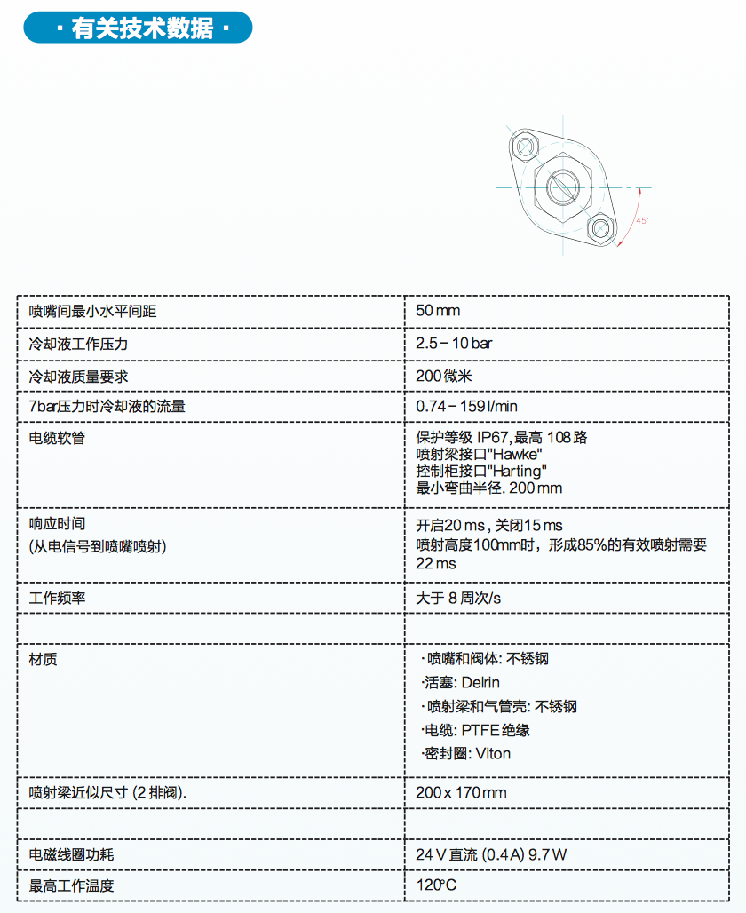 无需压缩空气,大大降低工作成本;响应速 度快;较大的通流能力,保证了有效精确的轧辊 冷却效果;阀体可以整体从喷射梁前部取出,易 于维护。